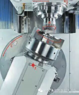 图2:Oerlikon 锥齿轮切削机C 29 – 正在进行滚齿加工,机轴被标示为红色